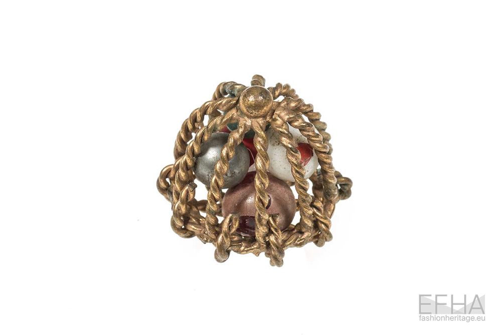 Jean Schlumberger started his career creating buttons for Elsa Schiaparelli in the 1930s. Later known for his innovative designs at Tiffany & Co., Schlumberger’s work for Schiaparelli already showed his technical skills and fascination with natural forms. From mushroom shaped buttons to drum-shaped cylinders and cage-like constructions, his early work reveals the artists’ talent for shaping and assembling metal into intricate sculptural forms, while combining it with a playful spirit. These buttons show Schlumberger’s capability to create texture, movement and depth on a miniature scale.